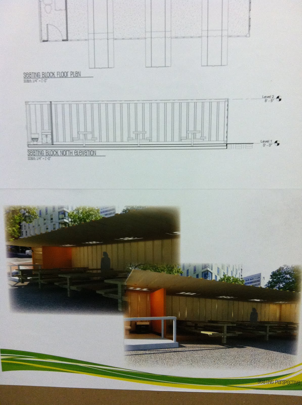 I had the great pleasure of seeing the final projects of the graduating class of interior designers at the Art Institute of Portland last night. Michelle Phan did her internship with me and was a valuable asset to my business! As you can see by her class project she is a forward thinker! Springbox is the name of her healthy fast food restaurant housed in shipping containers. This takes food carts to a whole new level! Michelle's menu consists of healthy non-fried spring rolls. She designed three containers: One to cook and serve food in, the top one to house the office and employee lounge and she used an adjoining container with a door on a hydraulic lift that creates outdoor seating. Her tables even extend if the weather is cooperative.