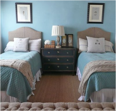 If you have 3 bedrooms, husband & wife, two daughters and one son that Equals what? OK let’s see if we can solve this problem. Bedroom1- Master Bedroom equals husband and wife, bedroom2= one son and bedroom 3 is shared between the two sisters. Hmmm Boy is this going to cause a problem but not if sharing a room doesn’t mean one bed. It’s just a matter of how you use what you've got, if you're short on space, need to make everyone in your house happy, consider allowing one room in the house to do double duty. If you consider two twin beds, in one room this can allow you to please both daughters because having their own bed will allow them some independence and a sense of having their own. Check out these beautiful "two twin beds" in one room designs below...